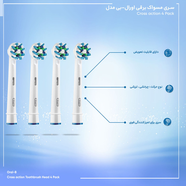 سری یدک مسواک برقی اورال-بی مدل Cross action بسته 4 عددی