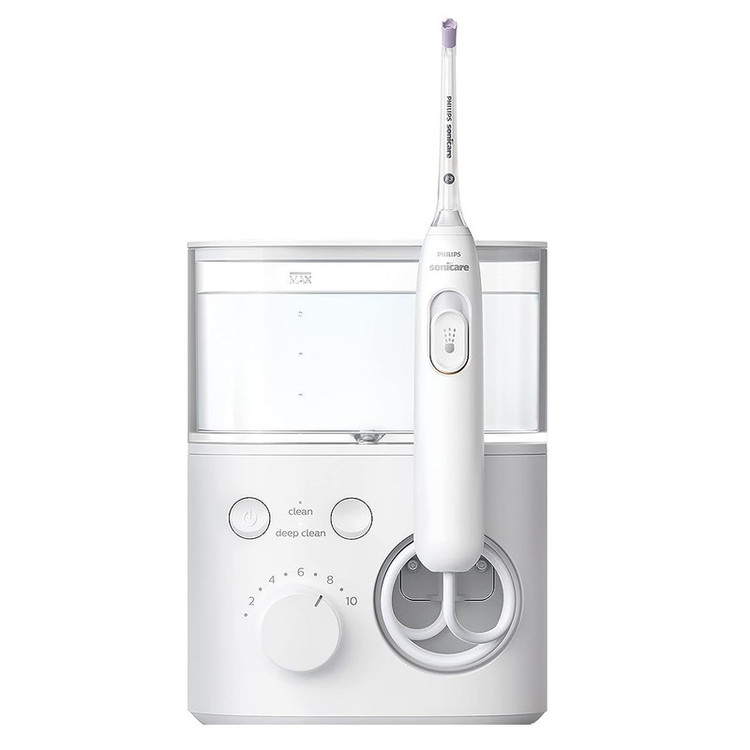 دستگاه واتر جت ( واتر فلاسر ) شست و شوی دهان و دندان فیلیپس مدل Sonicare 5000 یک دستگاه بروز و قدرتمند برای شست و شوی دهان و دندان است، این دستگاه در حذف پلاک های دندان و داشتن لثه های سالم بسیار موثر است همچنین علاوه بر امکان استفاده عادی برای عموم افراد، برای مواردی که استفاده از نخ دندان مشکل است همچون اورتودنسی یا ایمپلنت و بریج، به آسانی امکان شست و شو را فراهم میاورد. از ویژگی های این دستگاه میتوان به دو مود تمیز و بسیار تمیز با 10 سطح تنظیم پیشرفته فشار آب از سطح ملایم تا پر فشارتر، سری قابل تعویض به همراه دو سری چهار جهته و استاندارد، امکان کنترل راحت تر با دکمه کنترل روی دسته، امکان گردش 360 درجه دسته برای راحتی بیشتر دست هنگام شست و شو، ابعاد و وزن بسیار مناسب آن برای استفاده حتی در فضا ها و روشویی های کوچک یا امکان حمل آن در سفر و صدای کمتر دستگاه در مقایسه با سایر دستگاهها اشاره کرد. احساس تمیزی و پاکیزگی در دهان بعد از استفاده از این دستگاه بسیار خوشایند و لذت بخش است. این دستگاه دارای تاییدیه انجمن دندانپزشکی است.